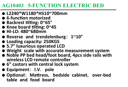 AG10403 5-FUNCTION ELECTRIC BED