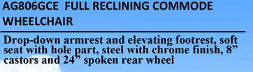 AG806GCE FULL RECLING COMMODE WHEELCHAIR