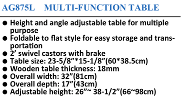 AG875L MULTI-FUNCTION TABLE
